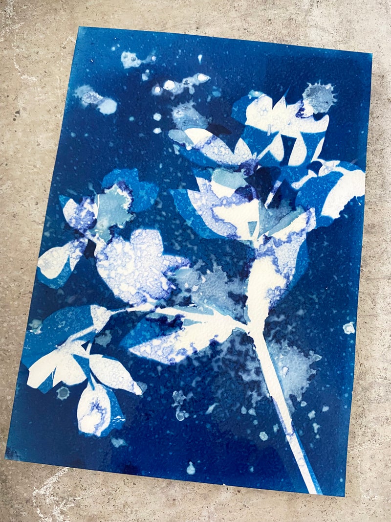 Het toevoegen van zuren of tannines aan het papier of stof, voordat je het blootstelt aan het zonlicht (zogenaamde 'wet' cyanotype), zorgt voor een heel ander effect tijdens het ontwikkelproces en ook het verlengen van de belichtingstijd geeft heel andere resultaten. Zo wordt elke afdruk uiteindelijk uniek en dat is het mooie van cyanotype.