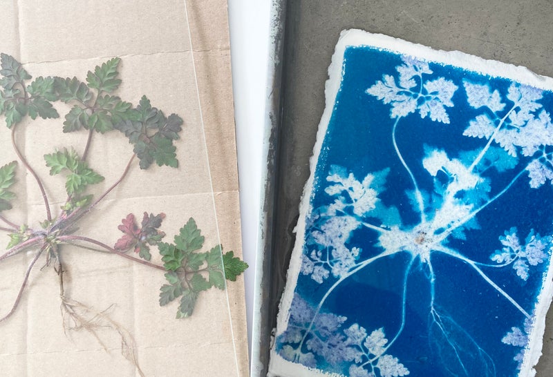 Cyanotype is een van de oudste fotografische processen. Een mengsel van bepaalde stoffen maakt papier gevoelig voor zonlicht en er ontstaat een prachtige diepblauwe kleur: Pruisisch blauw. Om deze reden wordt het ook wel een blauwdruk genoemd. De Engelse wetenschapper, fotograaf en astronoom John Herschel ontdekte dit proces in 1842. Hoewel hij misschien wel de ontdekker is, is Anna Atkins degene die het toepaste in de fotografie. Als eerste vrouwelijke fotograaf gebruikte ze de techniek voor haar botanische studie. Ze bracht een serie boeken met cyanotypische afbeeldingen uit die varens en andere planten beschreven.